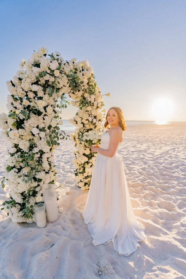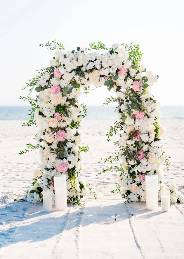 Our Florida beach wedding packages offer iconic Gulf Coast beauty paired with warm breezes and vibrant sunsets. Whether you’re planning a destination wedding or a local celebration, our Florida packages are fully customizable to reflect your unique love story. We have over 20 fabric colors and 8 arches to choose from.