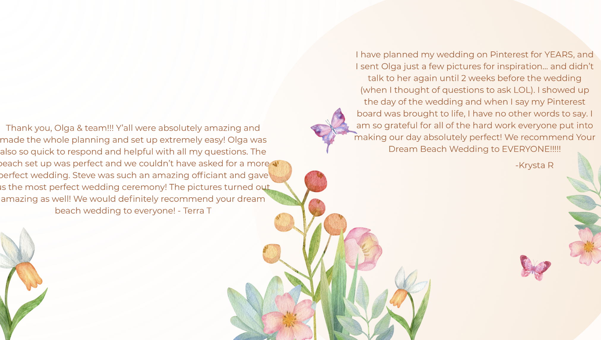 I did a lot of research on the perfect place to make our wedding day so memorable. Choosing Olga with Your Dream Beach Wedding couldn't have been a better choice. She was quick to reply, super nice, and made our experience absolutely amazing!!! Our wedding was beautiful all thanks to Olga!